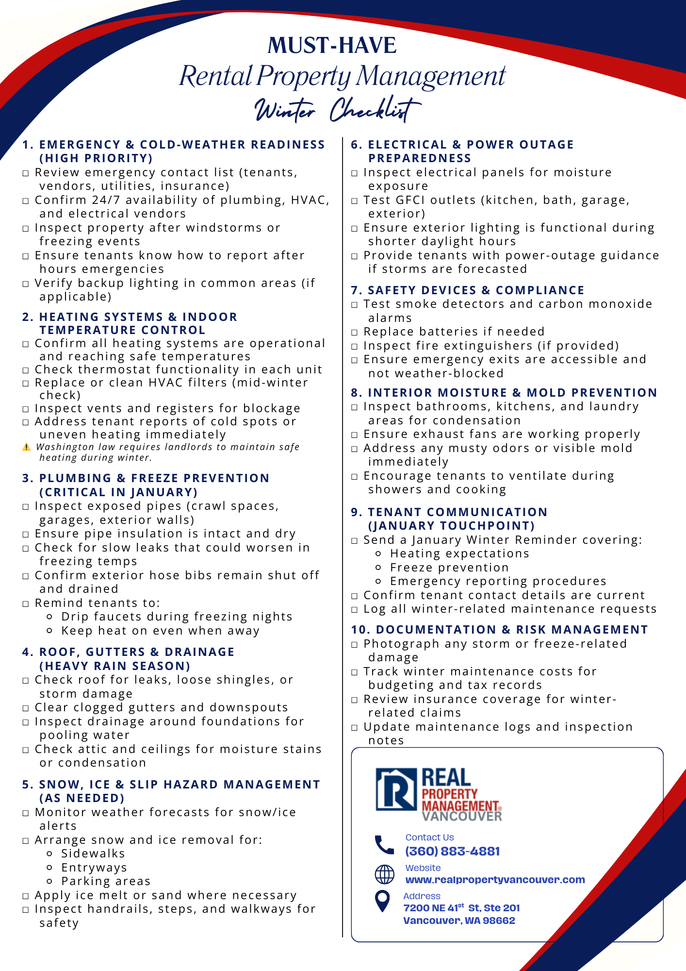 Make winter property management easier with a January-specific checklist designed for Vancouver, WA conditions.