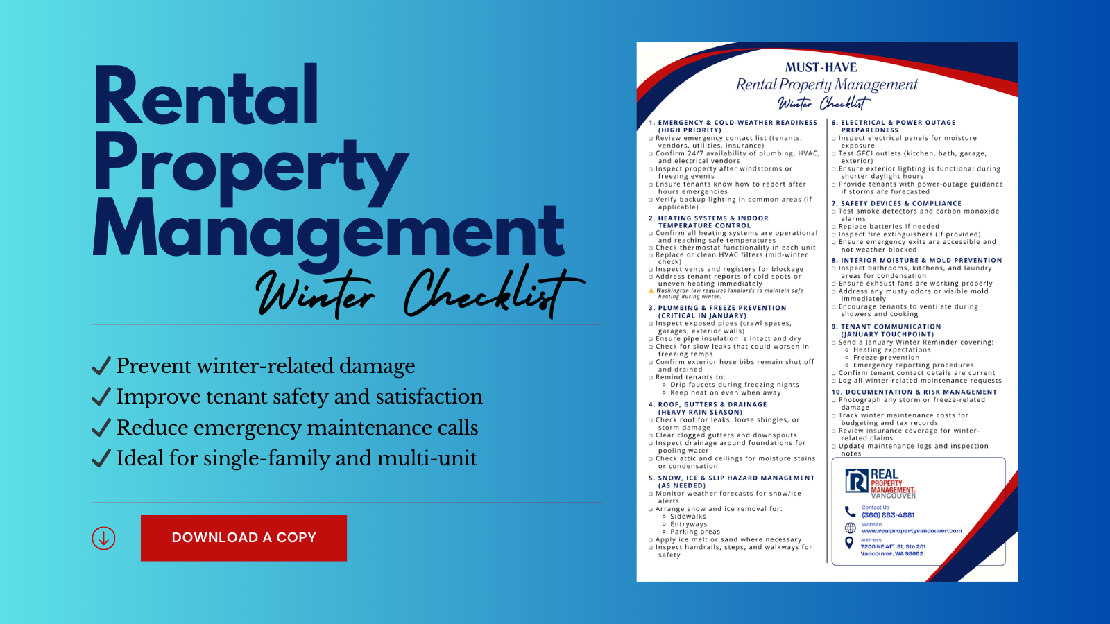 👉 Download the January Winter Rental Property Management Checklist and stay ahead of costly repairs, emergencies, and safety issues.